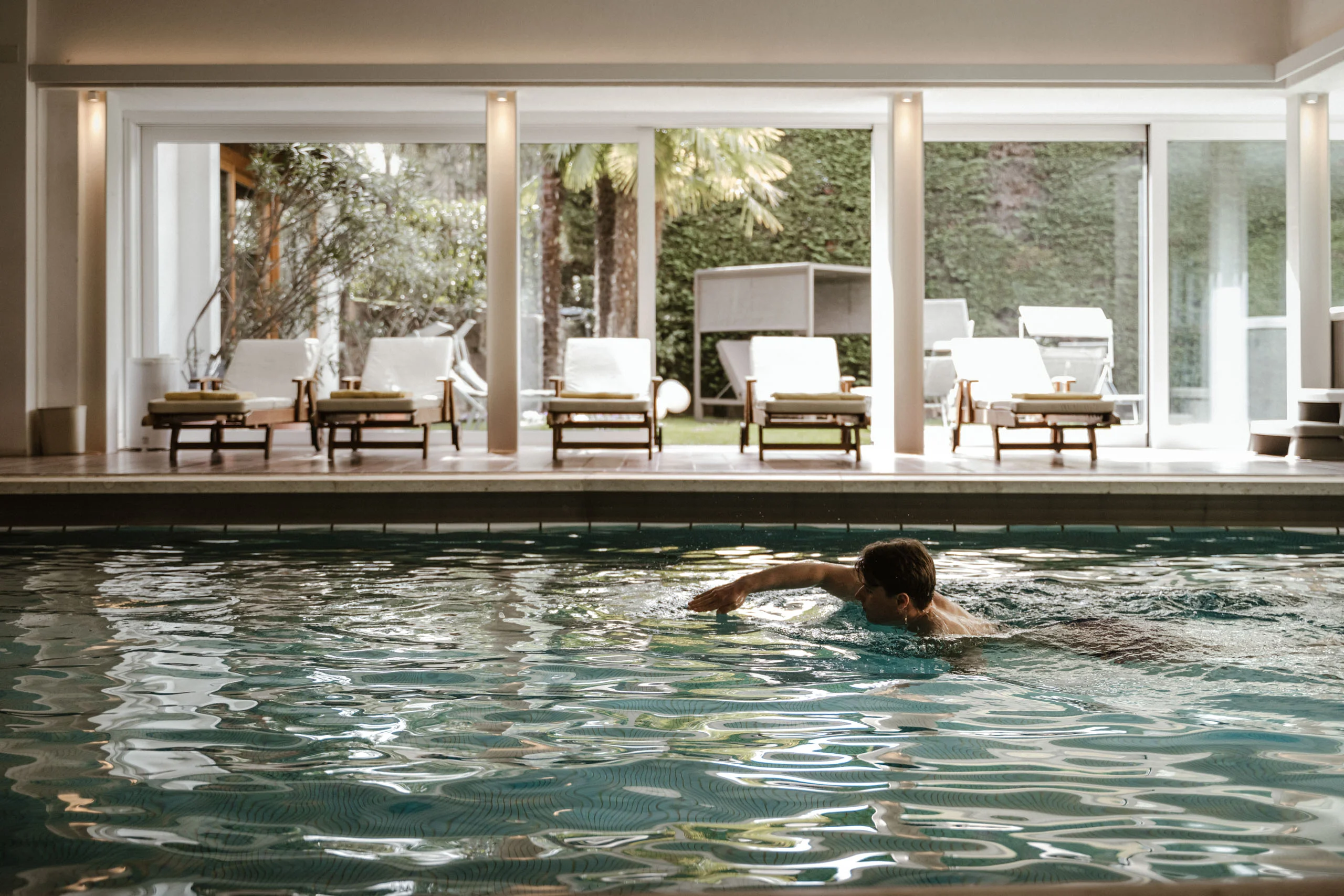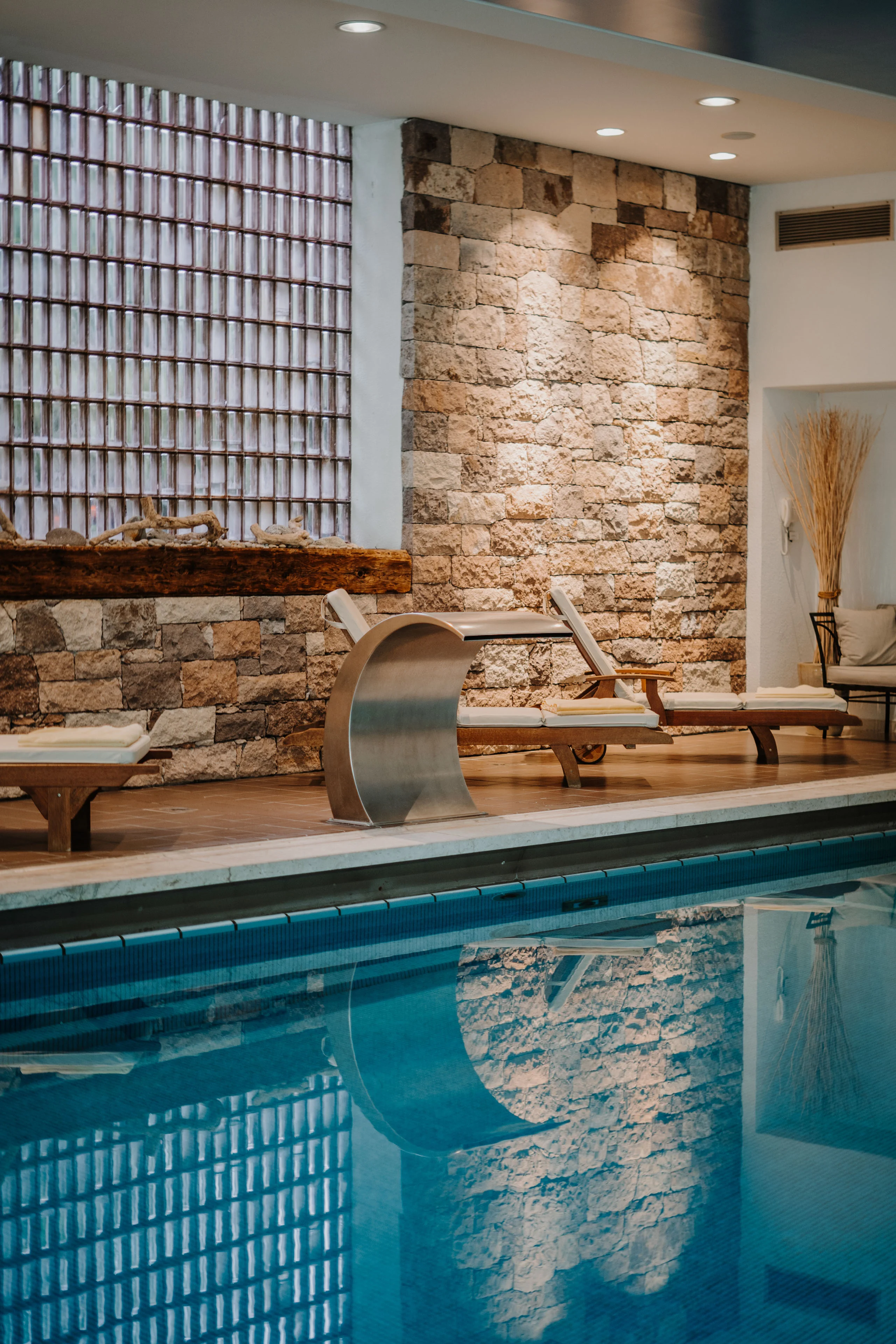 - Large indoor swimming pool with marble basin – heated to a comfortable 30°C all year round, for swimming, floating, and relaxing